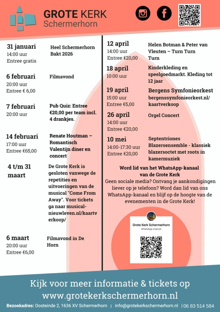 Midden in het landelijke Noord-Hollandse dorp Schermerhorn staat de sfeervolle Grote Kerk. Gebouwd in 1636 en compleet gerenoveerd in 2017. Daarmee is het een indrukwekkend mooie locatie geworden voor elke activiteit, waar mooie herinneringen en bijzondere indrukken kunnen ontstaan.